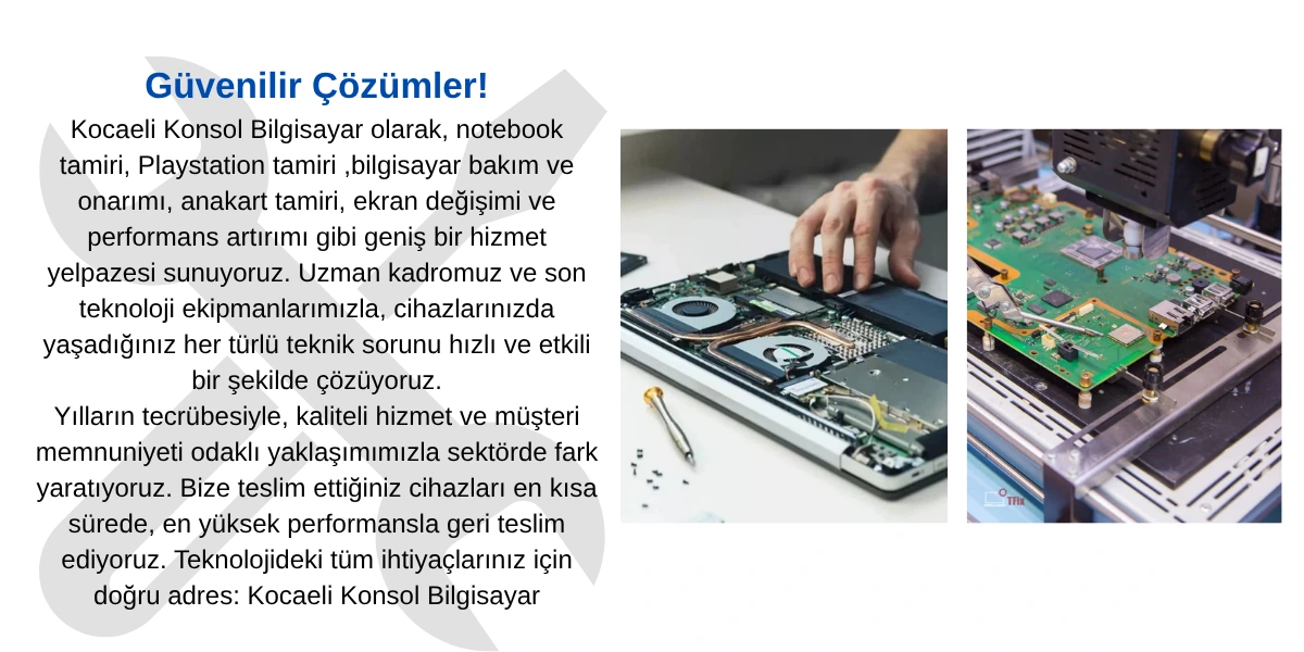 Güvenilir Çözümler! Gökay Elektronik olarak, notebook tamiri, bilgisayar bakım ve onarımı, anakart tamiri, ekran değişimi ve performans artırımı gibi geniş bir hizmet yelpazesi sunuyoruz